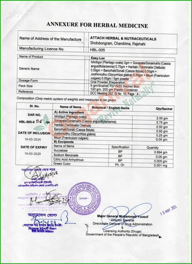 আমাদের Easy-Lax হচ্ছে DGDA কর্তৃক অনুমোদিত