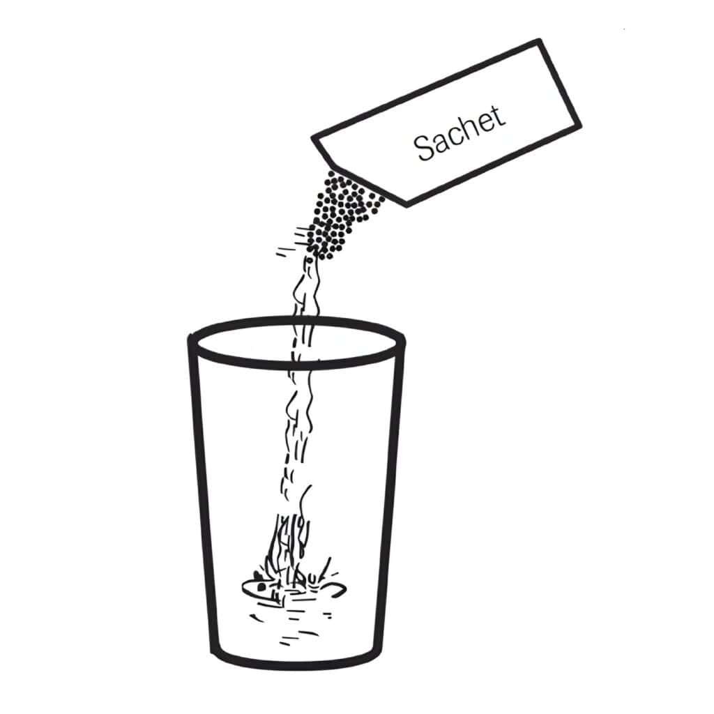 এক Sachet পাউডার গ্লাসে ঢালুন