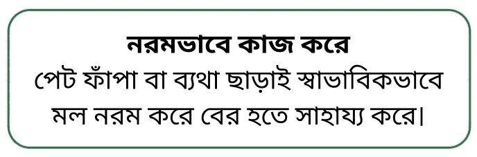 Easy-Lax পেটের ভেতরে পানি ধরে রাখতে সাহায্য করে, ফলে পায়খানা নরম হয় এবং সহজে পরিষ্কার হতে সহায়তা করে। একই সঙ্গে এটি গ্যাস ও পেট ফাঁপার অস্বস্তি কমাতে সাহায্য করে এবং হজম প্রক্রিয়াকে স্বাভাবিক রাখতে সহায়ক ভূমিকা রাখে।